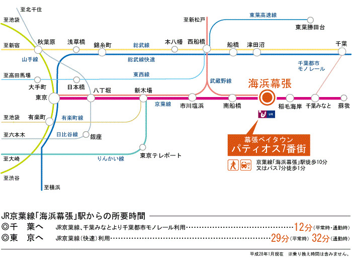 JR Keiyo Line 『 JE13 Kaihinmakuhari Sta. 』 7 min by bus 『ミライオ』 Bus Stop 1 min walk |