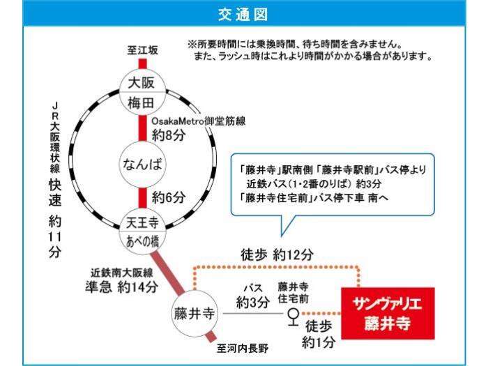 Kintetsu Minami Osaka Line 『 Fujiidera Sta. 』 3 min by bus 『藤井寺住宅前』 Bus Stop 1 min walk Kintetsu Minami Osaka Line 『 Furuichi Sta. 』 26 min walk |