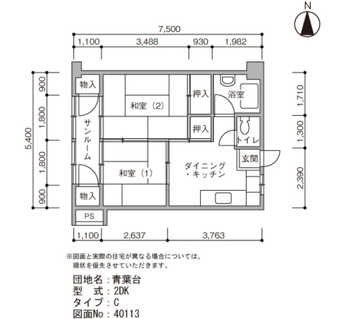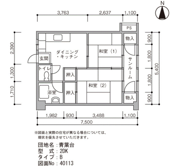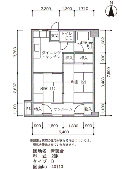 Closed | 5F | 2DK | 40㎡ | Details |