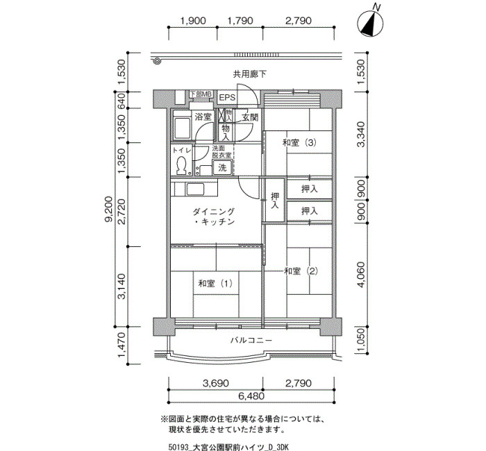 間取図と現況に相違ある場合は、現況優先となります。また、住宅に