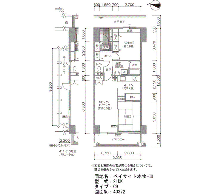 | 2LDK | 64~70 | ¥129,800~150,100 | 11 |